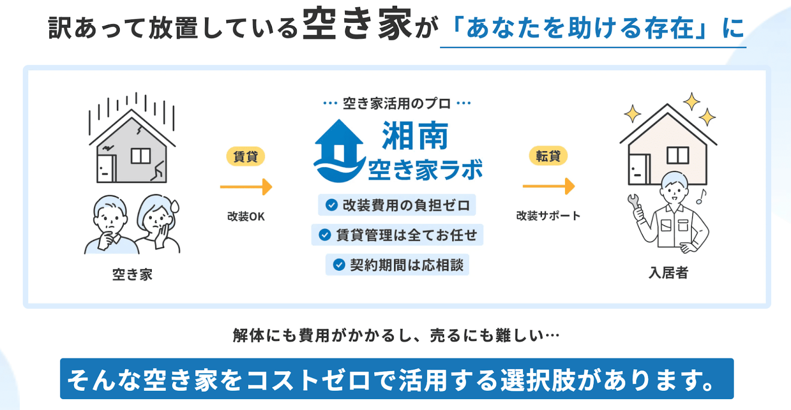 湘南空き家ラボでは改装費の負担ゼロで活用可能です