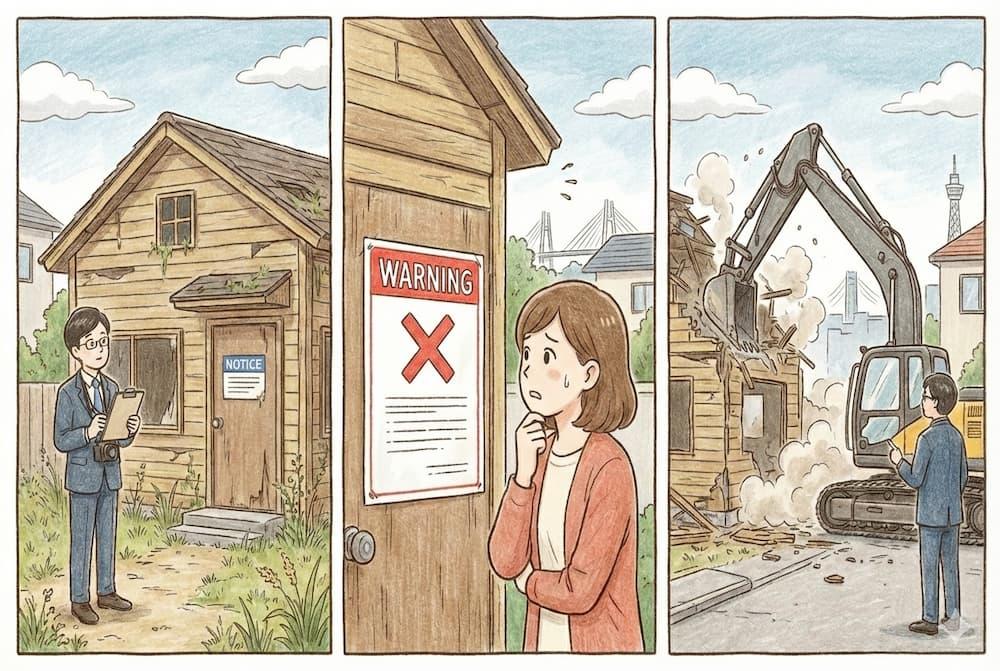 この時点ではまだ罰則や増税はありませんが、行政から「危険な空き家」としてマークされた状態です。